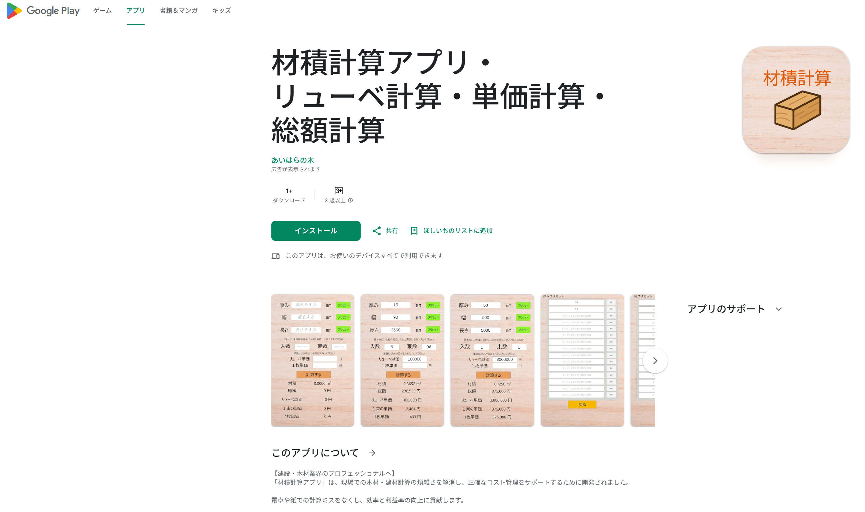 木材の材積、合計金額、リューベ単価、1枚単価、1束単価が計算できるアプリをつくりました。 unityとC#で組みました。グーグルプレイで無料でダウンロードできます Android専用です。 厚み、幅、長さ、入数、束数とリ…